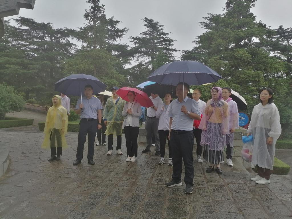伴着绵绵细雨,党员们共同来到赣榆区抗日山陵园,在抗日山小沙东海战烈士塚前,全体党员向为民族解放事业抛头颅、洒热血的滨海抗日根据地阵亡将士们默哀并敬献花篮,表达对烈士的无限敬仰之情。接着,全体党员在党旗前庄严宣誓,为共产主义奋斗终身的誓言响彻云霄。